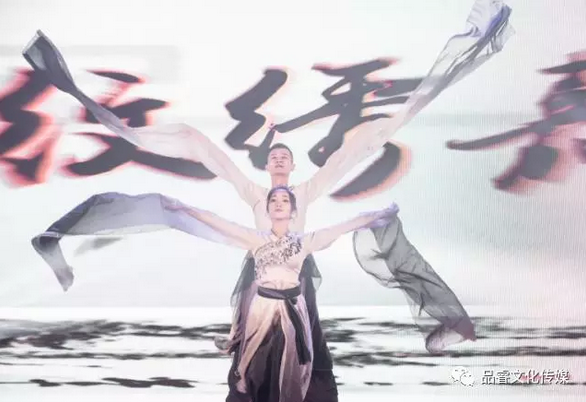 开场,满满中国风的水墨舞,带领我们走进了一个美轮美奂的世界,着实令人震撼。特别是最后舞蹈演员挥洒衣袖,在大屏幕上描写下“第二届明星纹绣嘉年华”几个字,将中华文化演绎地淋漓尽致。
