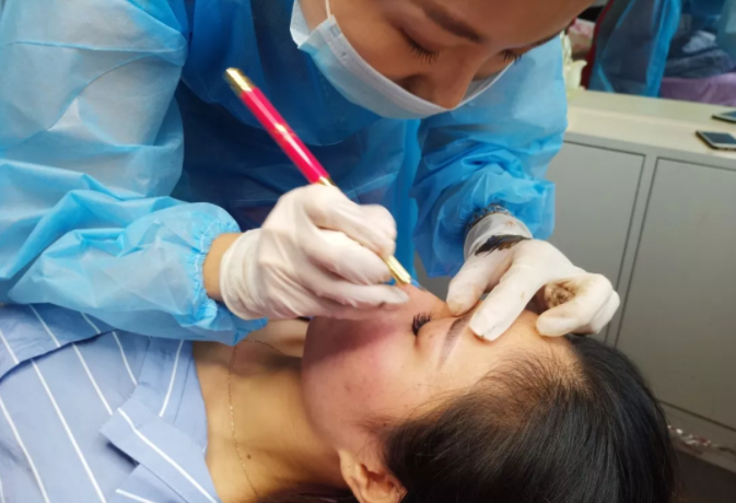 操作定妆眉,要经历:给眉毛修形,进行眉型设计,然后还有给色料调色,敷稳定剂,定妆眉操作,术后保养等步骤。