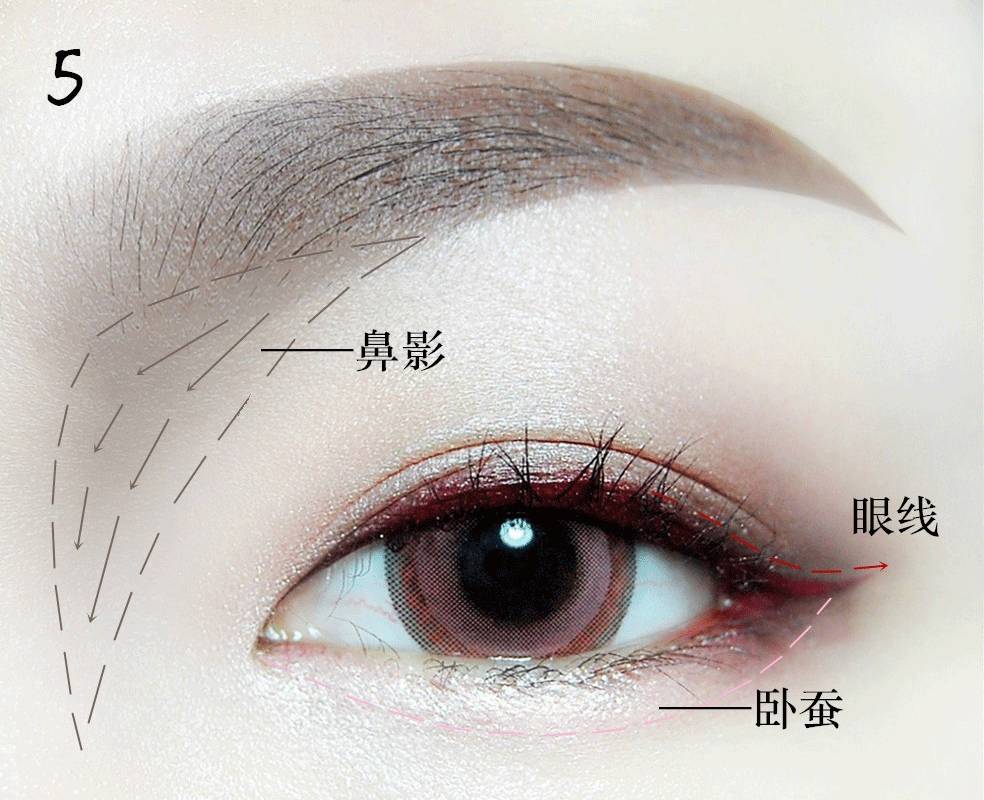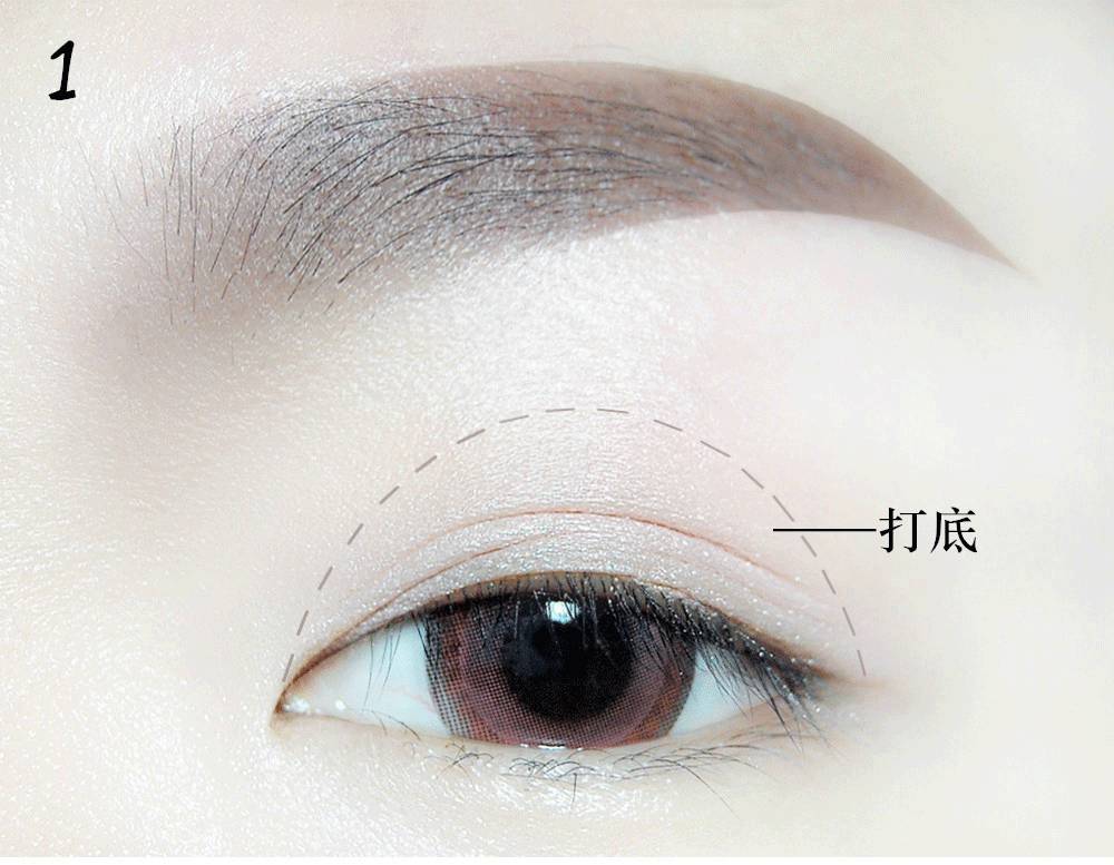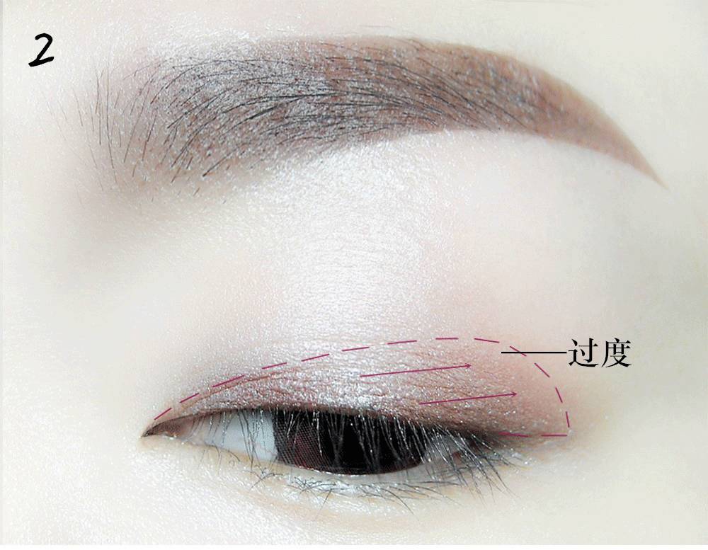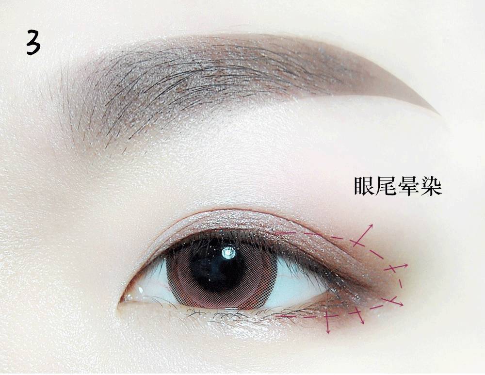 涂抹在眼头、眼尾贴着睫毛根的地方再渐渐向上晕染开