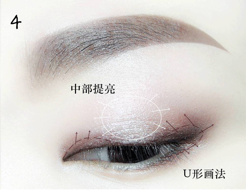 轻轻涂抹于上眼皮中部,再向四周晕开