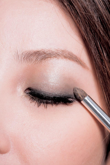 再用深色的眼影稍微修饰一下,不过,眼影不要太亮哦,否则适得其反。