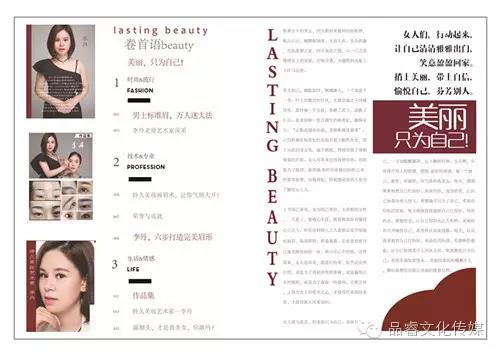 纹绣行业,不乏技术比你好,资历比你深,人脉比你广的人。而你要如何比得过别人。那就需要推广宣传,让别人都认识你、认可你、赞赏你。而宣传没点料怎么行。首先,硬实力——技术,需要你自己提高。而软实力——品牌形象包装,持久美妆网可以帮助你。我们会在前期对你整个的个人形象进行包装,然后把我们包装后的成果,以视频、图片等形式用于社交网站平台的发布,以及一些具体的落地宣传,从而提高你的知名度,顾客也就会慕名而来了。